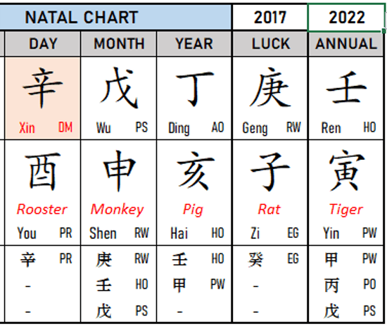 So I looked up his Bazi and though I do not have his time, nonetheless, it can give us some clue. Below is his Bazi together with his Luck cycle and 2022 Water Tiger year.