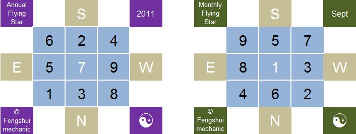 On the 8th of September we enter the month Ding You, lets see what is installed on the Flying Star Chart: