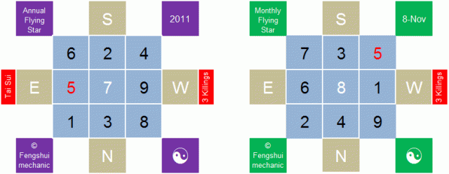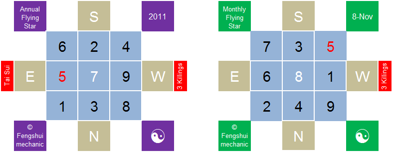 On the 8th November we shall enter the month of 己亥 or the Earth Pig. Let’s look at the flying star for this month: