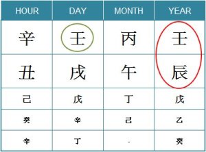 The Red circle is called the Year while the Green Circled is called the Day Master (DM).