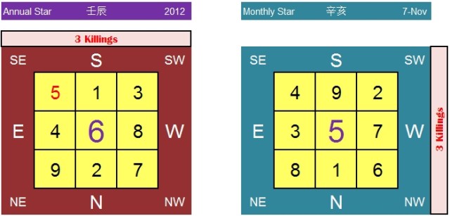 Here another month comes as we enter 7th Nov into the month of the Metal Pig. Here is November Flying Star Chart.