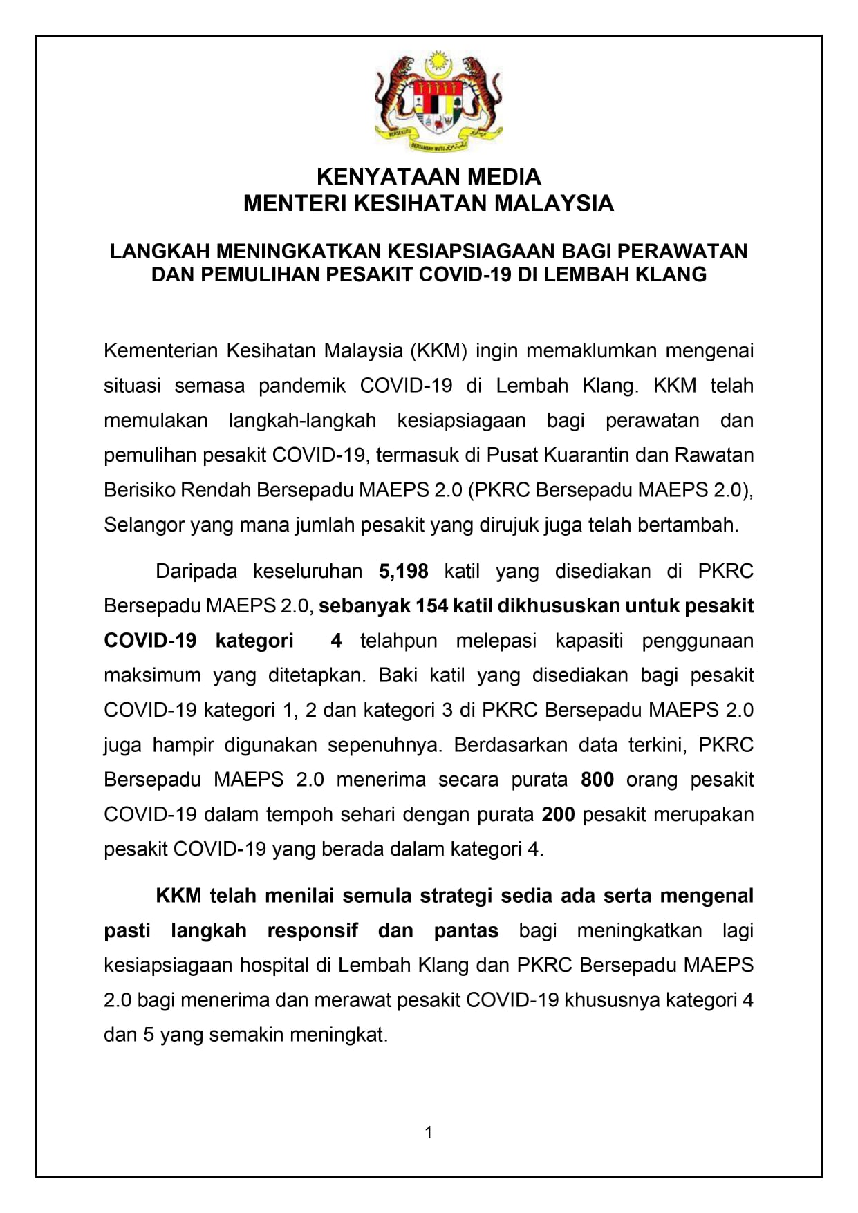 Umno retracted support for PM Mahiaddin putting the country into another political uncertainty. Cases up to a new high of above 8000 cases after we are into 5th week of a lockdown. Discharge is all time low of 5 in one day. Death rates is also passing the 100 mark. Ministry of Health is preparing more beds and quarantine centers.